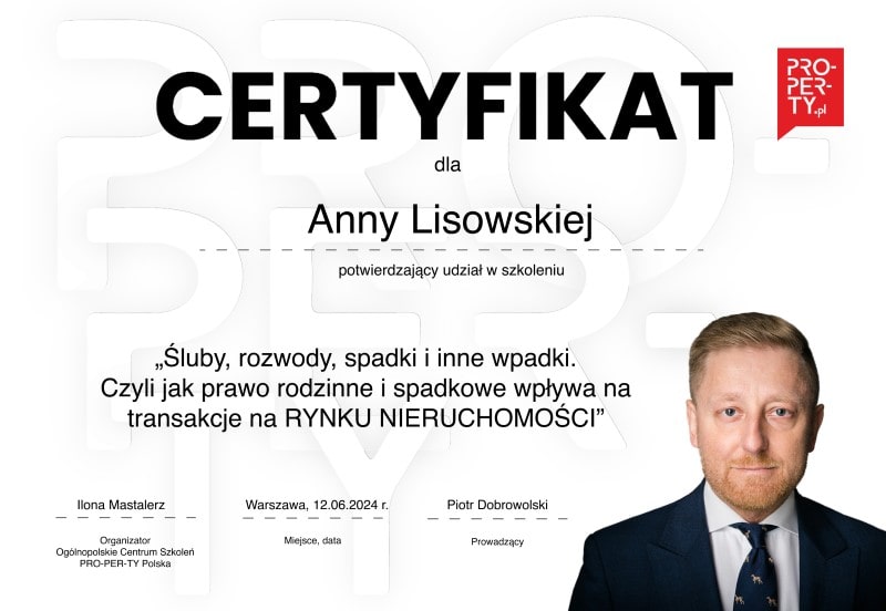 Moje wieloletnie doświadczenie przekłada się na satysfakcję i zadowolenie Klientów. Sprzedaż czy zakup nieruchomości i związane z tym procedury nie muszą już stanowić obciążenia. Pomogę Państwu przejść w pełni przez drogę związaną z przeniesieniem własności. Jestem z Wami od początku tej drogi do końca – zwieńczonego sukcesem.