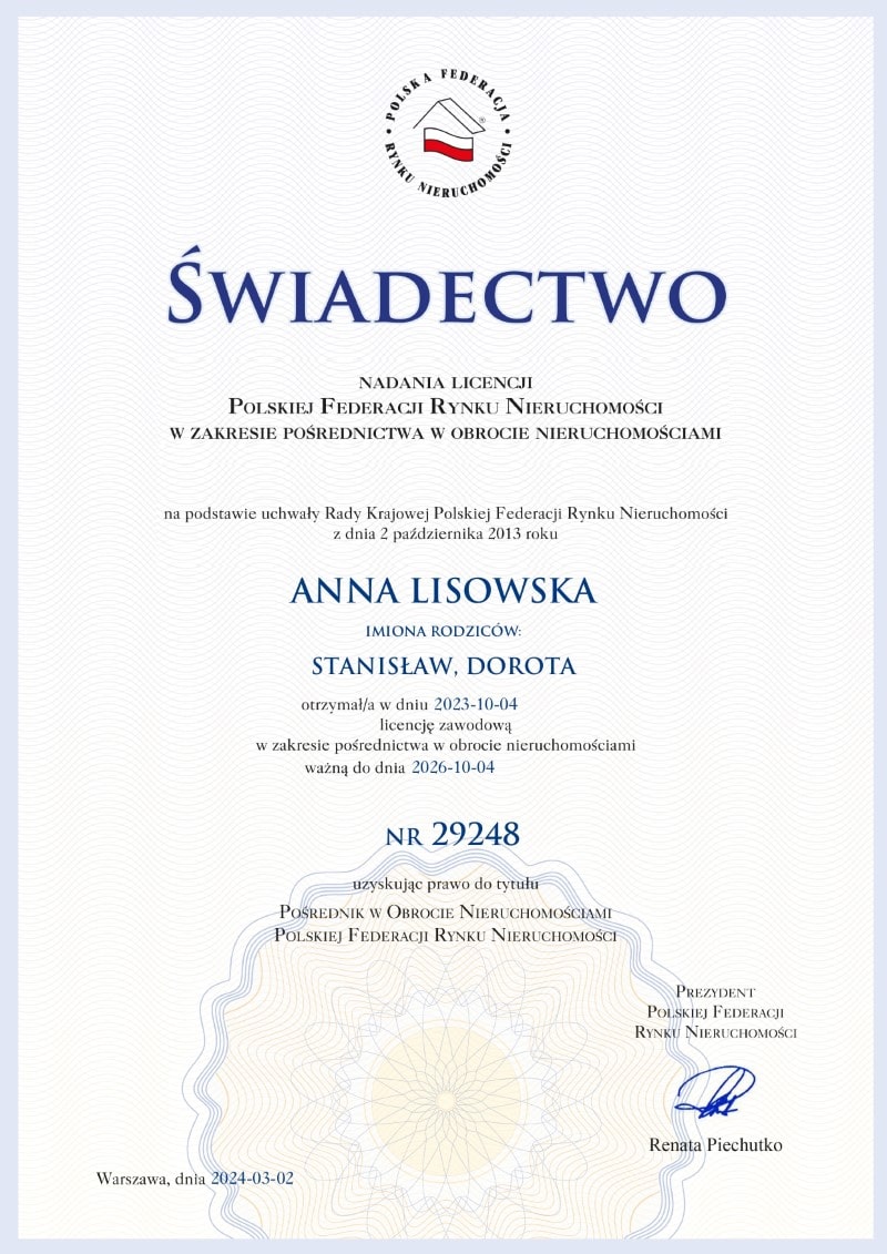 Stanowisko: Licencjonowany Pośrednik w Obrocie Nieruchomościami