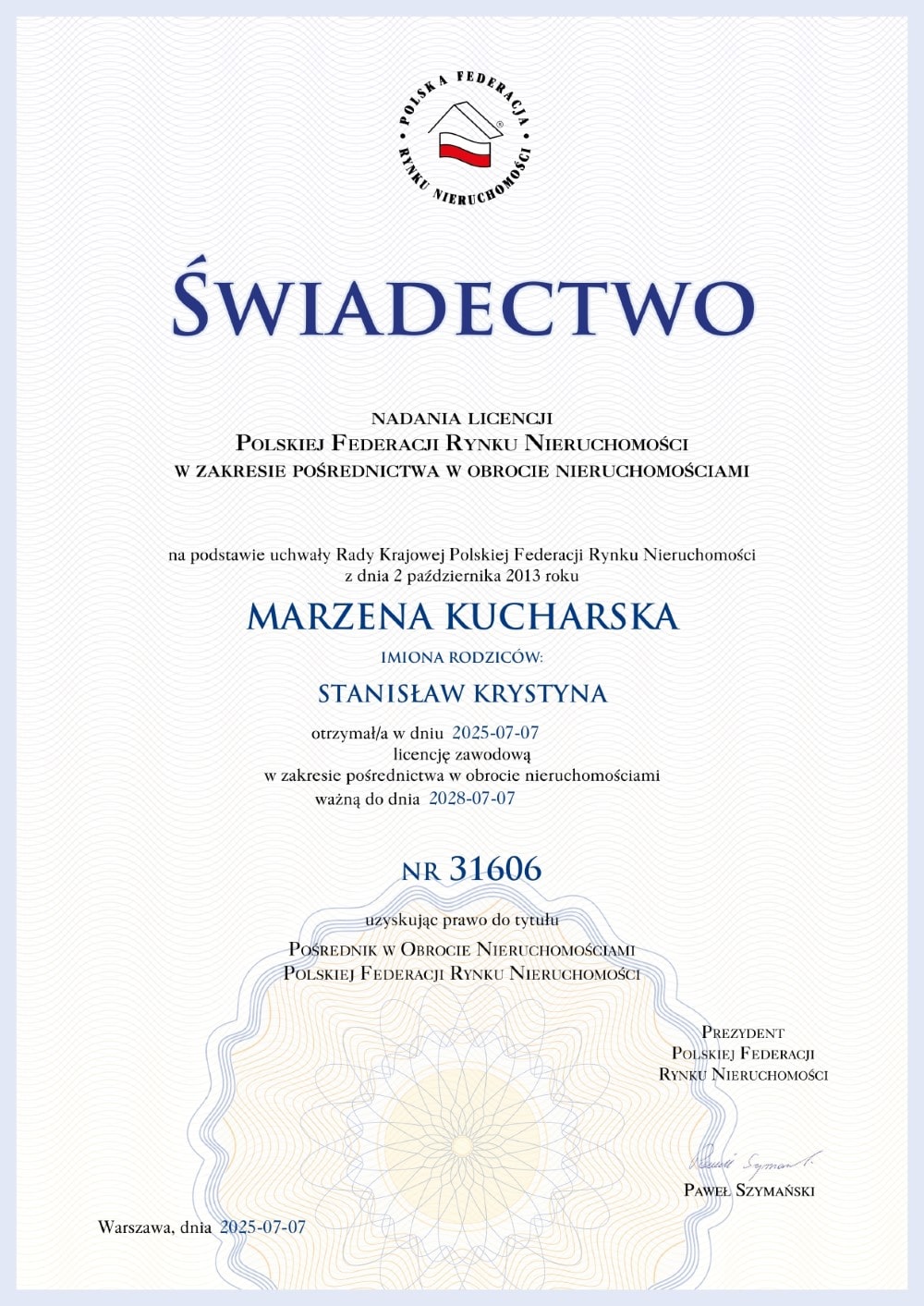 Stanowisko: Członek Zarządu, Licencjonowany Pośrednik w Obrocie Nieruchomościami